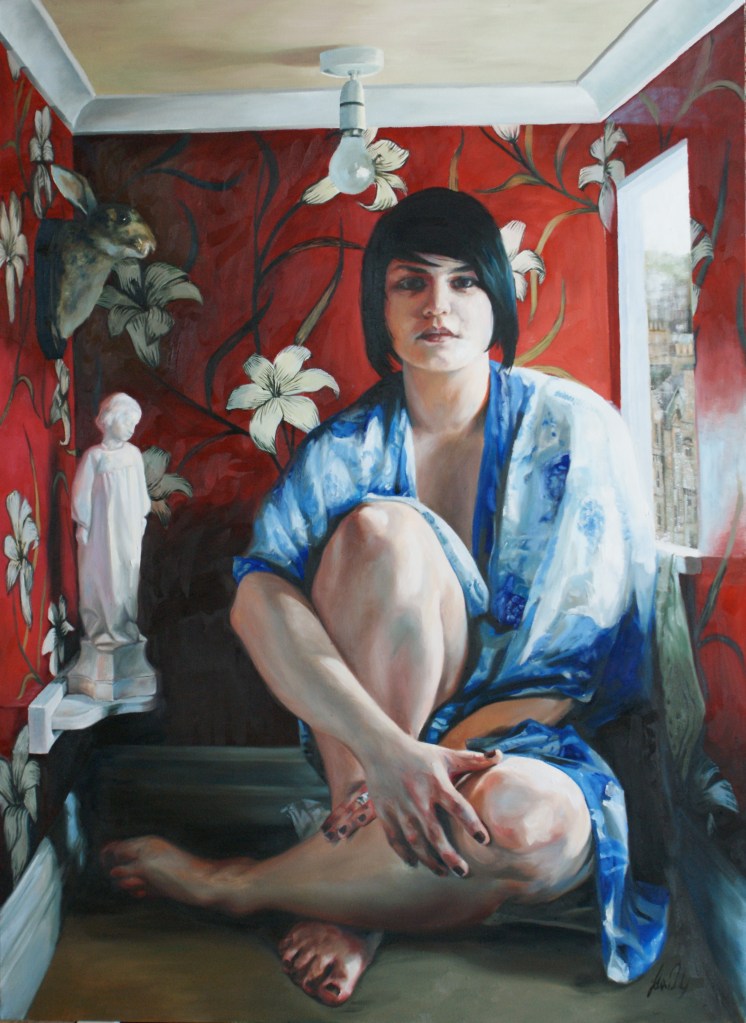 A series of paintings inspired by a friend who ventured to London as a young man. Rent was so expensive that he rented a 3ft deep built in wardrobe where he slept and stored all his belongings. I always liked the idea of these rather large paintings being hung in tiny modern rooms.